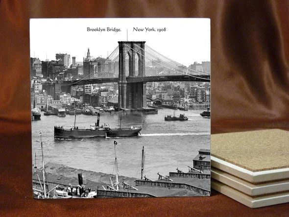 Ceramic Tile Coaster Brooklyn Bridge. New York. 1908